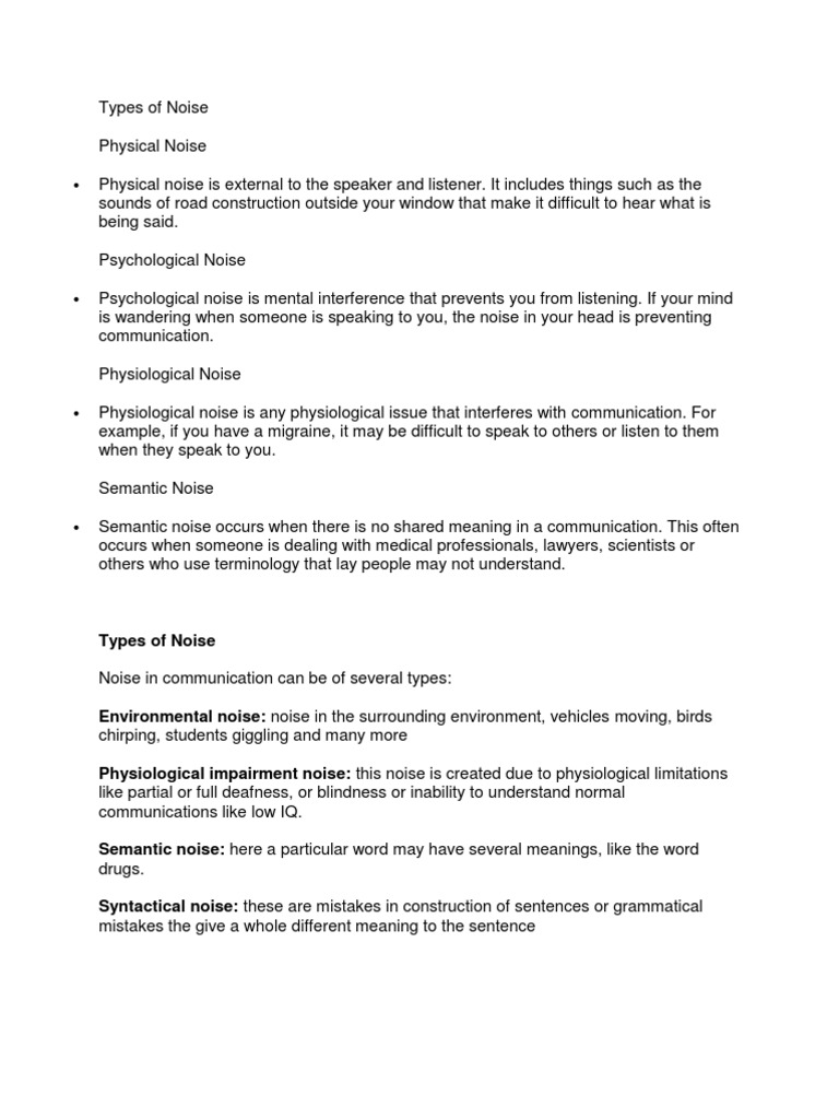 Forms of communication noise include psychological noise, physical noise, physiol. Maybe you would like to learn more about one of these? We did not find results for: Check spelling or type a new query. While often looked over, communication noise can have a profound impact both on our perception of interactions with others and our analysis of our own communication proficiency.